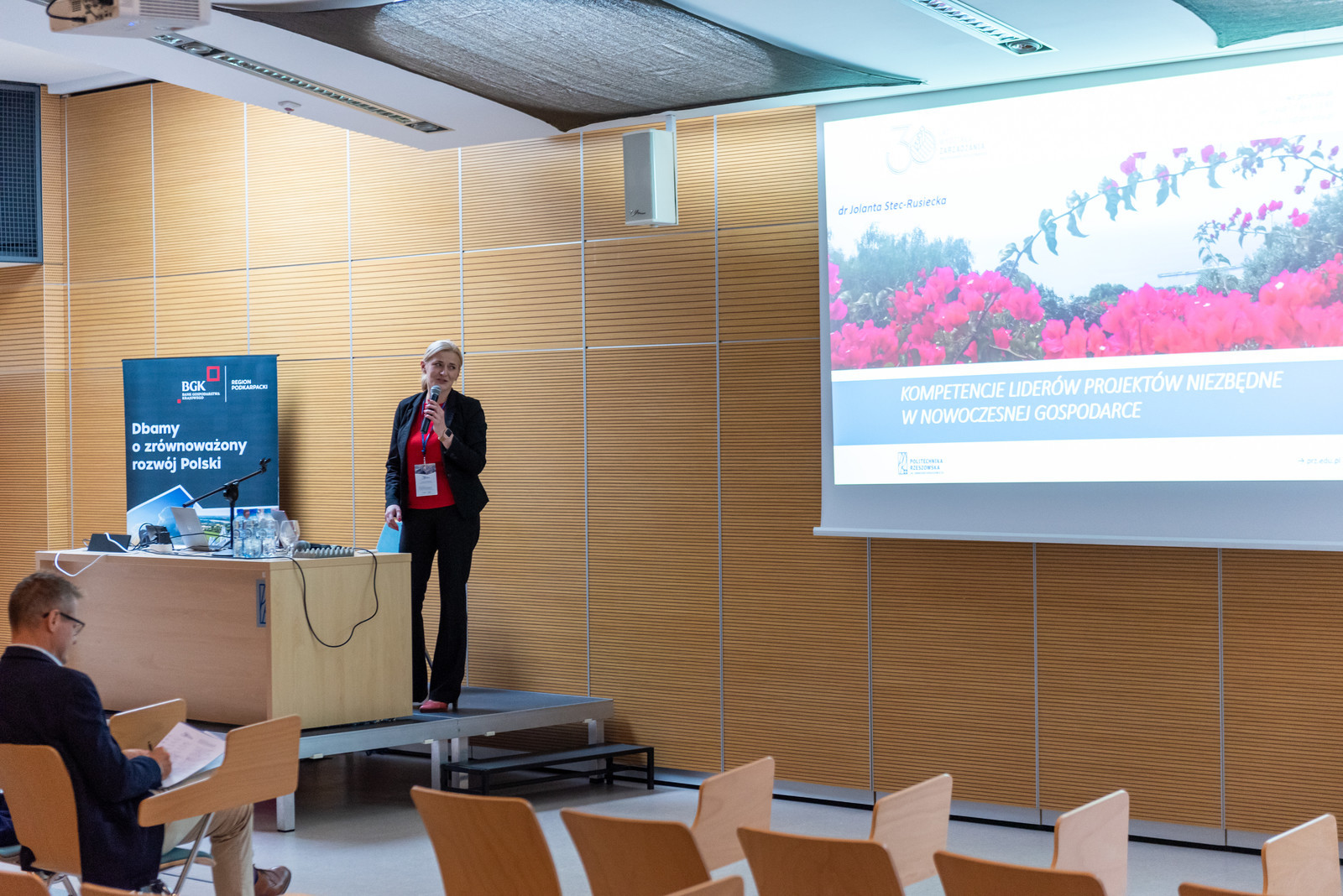 Moderatorami sesji byli: dr hab. inż. Agnieszka Cholewa-Wójcik, prof. Uniwersytetu Ekonomicznego w Krakowie, dr hab. inż. Dariusz Siemieniako, prof. Politechniki Białostockiej, prof. Akademii Leona Koźmińskiego w Warszawie. Podobnie jak podczas pierwszego dnia, wspólnym tematem łączącym bardzo ciekawe, jednak różnorodne wystąpienia były nowoczesne technologie oraz człowiek. W trakcie wystąpień nie zabrakło gratulacji i życzeń kolejnych 30 lat dla Wydziału Zarządzania.