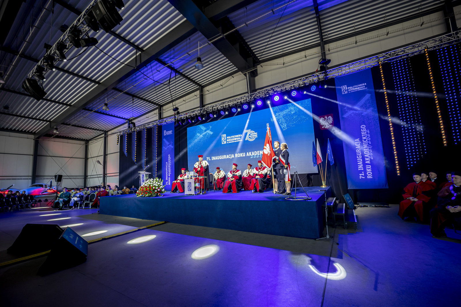 71. inauguracja roku akademickiego na Politechnice Rzeszowskiej odbyła się w wyjątkowym miejscu – w Ośrodku Kształcenia Lotniczego PRz w Jasionce. Uroczystość rozpoczęło wejście orszaku z pocztem sztandarowym, władzami uczelni i członkami Senatu. Po odśpiewaniu hymnu państwowego chwilą ciszy upamiętniono zmarłych pracowników Politechniki Rzeszowskiej.