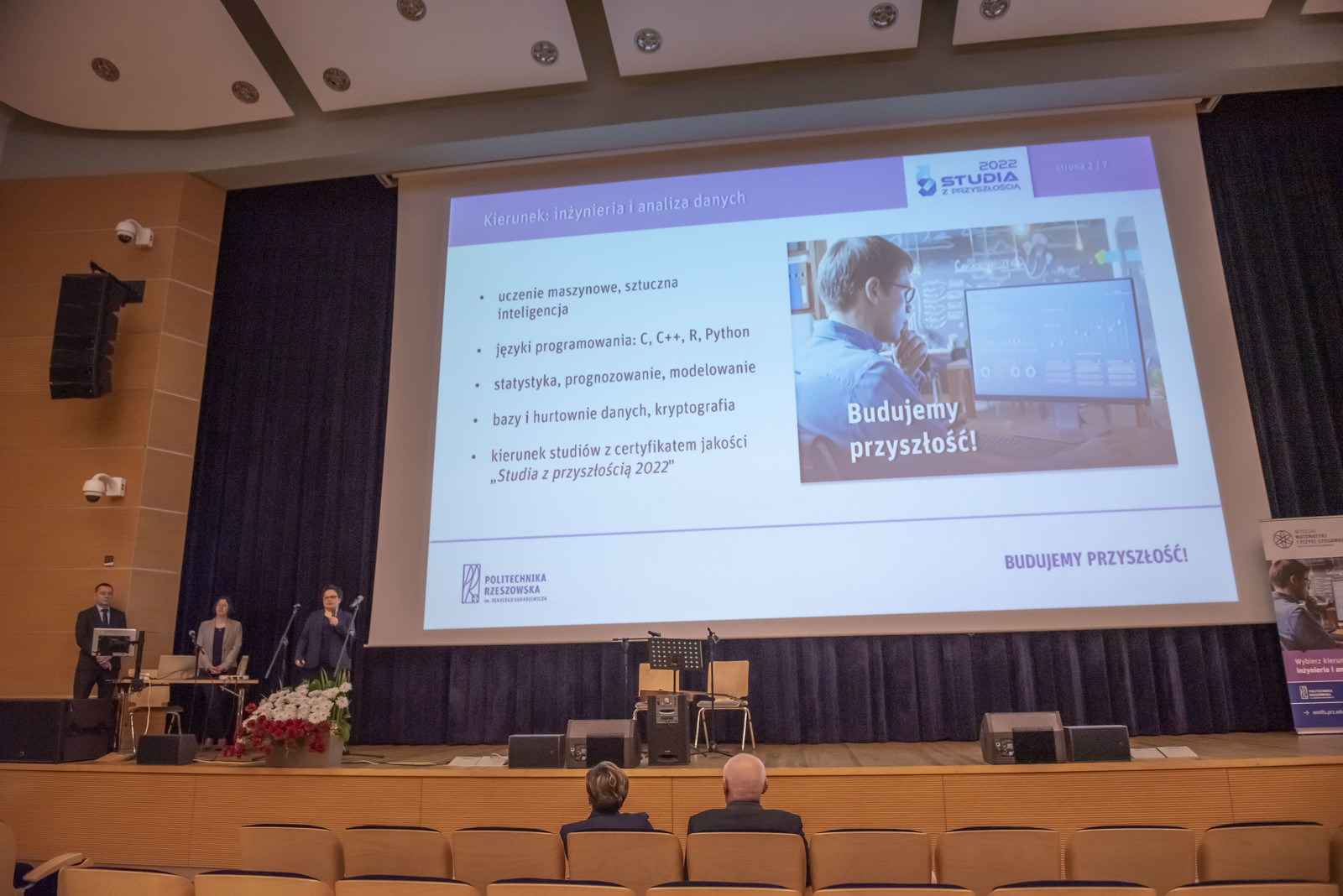 Podczas obu dni zgromadzoną młodzież uroczyście powitali rektor Politechniki Rzeszowskiej prof. dr hab. inż. Piotr Koszelnik oraz prorektor ds. kształcenia dr hab. Iwona Włoch, prof. PRz. Władze dziekańskie WMiFS w krótkiej prezentacji przedstawiły kierunki studiów prowadzone na wydziale oraz perspektywy zatrudnienia absolwentów. Inauguracje Dni Otwartych uświetniły występem artystycznym studentki kierunku matematyka Katarzyna Biela i Klaudia Bukała. Młodzież miała okazję uczestniczenia w wykładach i warsztatach, które zostały podzielone na trzy główne panele związane z kierunkami studiów: inżynierią i analizą danych, inżynierią w medycynie oraz matematyką. Panele zostały uzupełnione o pokazy z fizyki, a także o zwiedzanie wydziałowych laboratoriów oraz biblioteki. Wykłady, warsztaty i pokazy prowadzili nauczyciele akademiccy prowadzący zajęcia na wymienionych kierunkach, lekarze oraz pracownicy zaprzyjaźnionych dwóch firm medycznych ImplantCast i STRING, jak również studenci kół naukowych: Machine Learning, X-med oraz Foton. Podczas Dni Otwartych aktywny udział wzięli studenci z Wydziałowego Samorządu Studenckiego oraz studenci WMiFS, którzy chętnie opowiadali uczniom o studiach w trakcie zwiedzania wydziału.