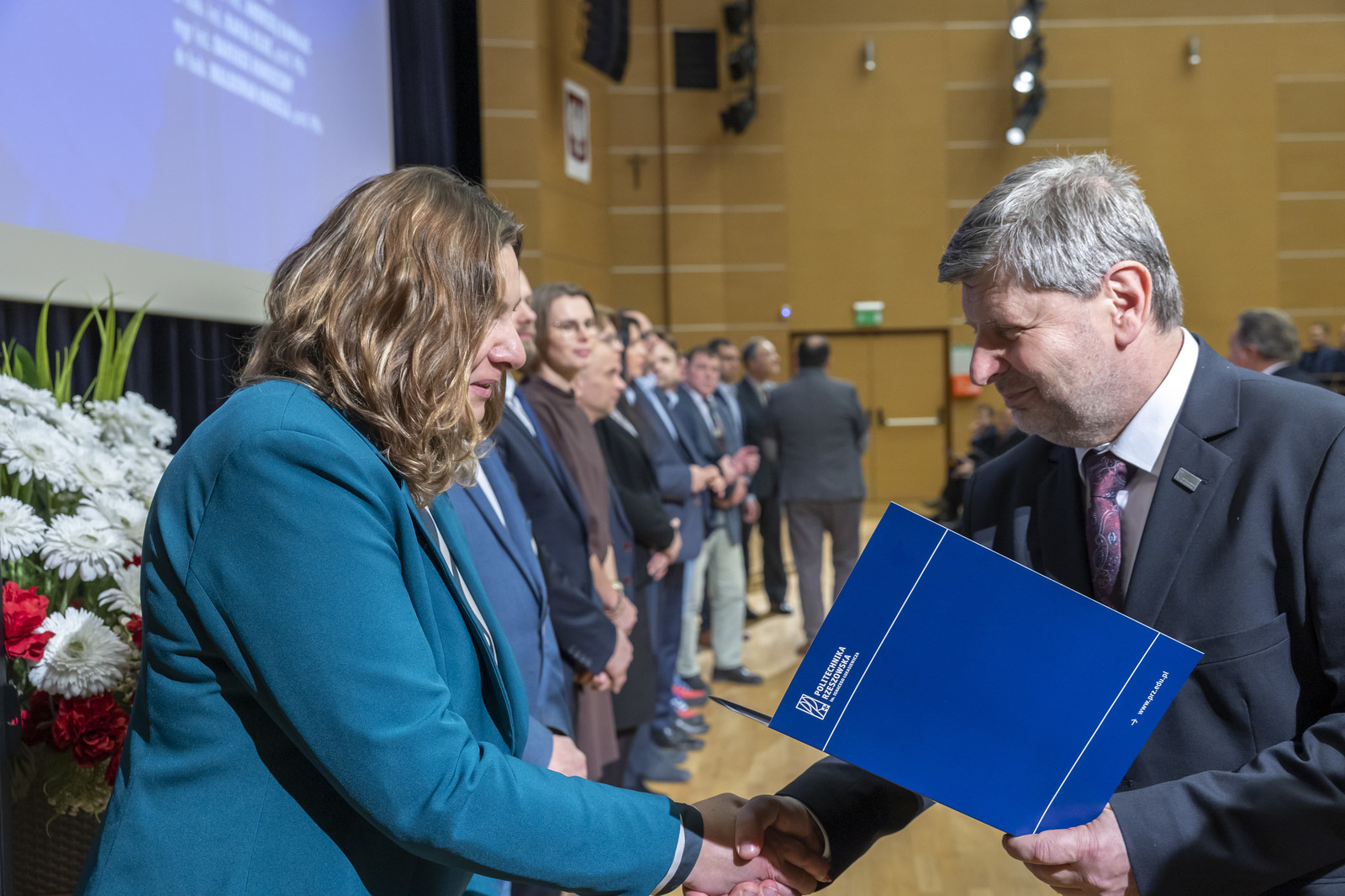 Uroczystość poprowadził prorektor ds. nauki dr hab. inż. Lesław Gniewek, prof. PRz. Dyplomy nagród wręczył rektor prof. dr hab. inż. Piotr Koszelnik. w towarzystwie dziekanów.