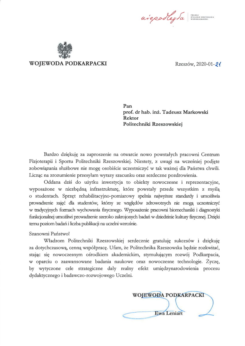 Podstrona: Otwarcie nowej pracowni Centrum Fizjoterapii i Sportu / POLITECHNIKA RZESZOWSKA im. Ignacego Łukasiewicza