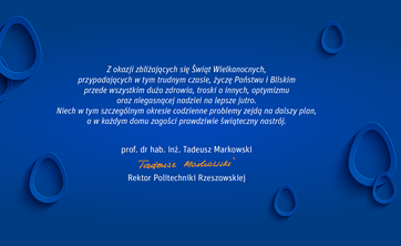 Prof. dr hab. inż. Tadeusz Markowski, Rektor Politechniki Rzeszowskiej składa życzenia z okazji Świąt Wielkanocnych.
