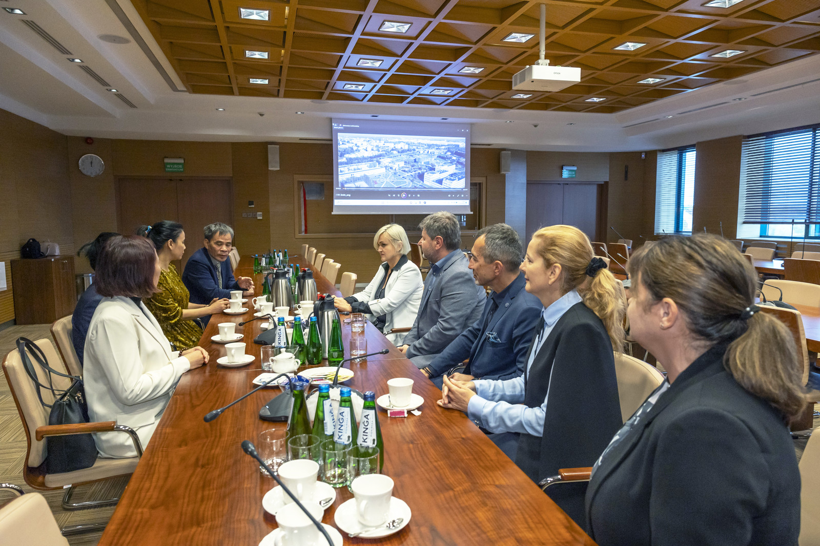 Spotkanie na Wydziale Zarządzania poświęcone było ustaleniom warunków dalszego kształcenia na najczęściej wybieranych przez kandydatów z Wietnamu kierunkach: zarządzanie oraz finanse i rachunkowość. W spotkaniu uczestniczyli prorektor ds. studenckich prof. dr hab. Grzegorz Ostasz, dziekan WZ dr hab. Beata Zatwarnicka-Madura, prof. PRz, kierownik Działu Współpracy Międzynarodowej mgr Edyta Ptaszek. W sali Rady Wydziału Zarządzania delegacja spotkała się z członkami rady dyscypliny nauki o zarządzaniu i jakości. Następnie goście wysłuchali prezentacji i pokazu eksperymentów w Laboratorium Towaroznawstwa, Laboratorium Kryminalistyki i Rozszerzonej Rzeczywistości. Pokazano wybrane doświadczenia dotyczące towaroznawczej oceny żywności. W celu przybliżenia tematyki badań przeprowadzanych w tych laboratoriach zaprezentowano proces ozonowania żywności, omówiono także proces pomiaru luminancji do oceny zawartości tłuszczu w produktach mięsnych. Laboratorium Badań Kryminalistycznych zaprezentowało sposoby zabezpieczania śladów linii papilarnych i innych dowodów pozostawianych na miejscu przestępstwa.